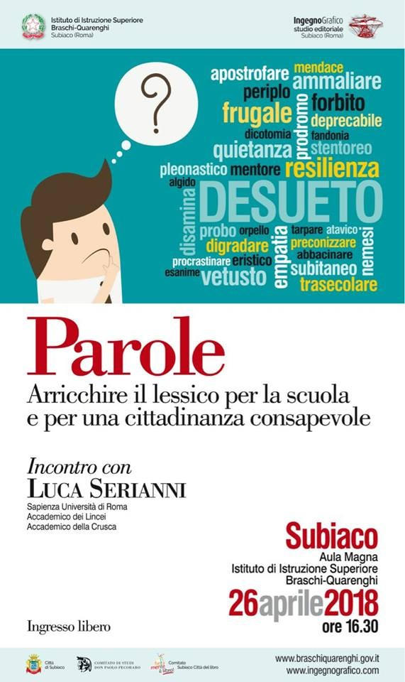 - Incontro con Luca Serianni "Parole. Arricchire il lessico per la scuola e per una cittadinanza consapevole"